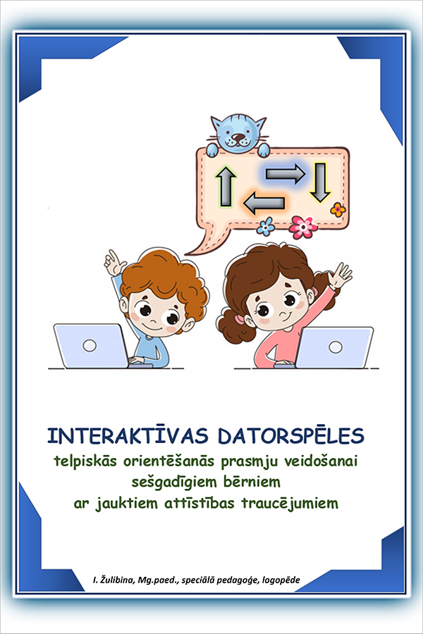 The digital learning tool combines 19 games (18 in Latvian, one in Russian), the purpose of which is to develop the ability to navigate in microspace (on a flat surface of a computer screen). The use of the tool promotes the ability to determine and/or depict the location of various objects, the mutual visual and spatial relationships of objects, and to orient in directions and verbally denote the development of spatial phenomena and relationships. The digital learning tool is intended for six-year-old children with mixed developmental disorders; it can also be used by preschool teachers and parents to promote the development of a child’s spatial perceptions.
