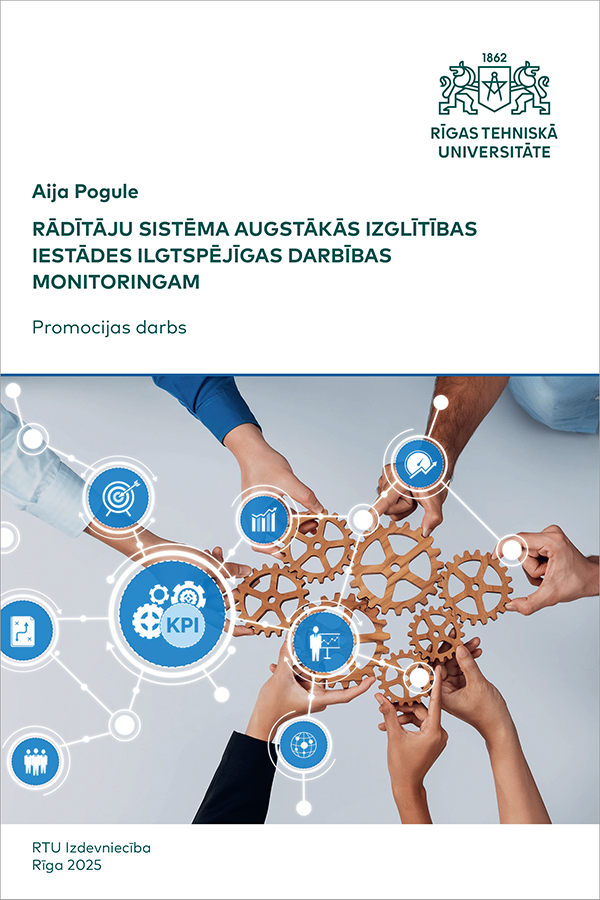 To be able to analyse an organisation’s sustainability, it is necessary to monitor it through an indicator system. This system includes defined indicators at various levels and objectives, as well as an analysis of their interrelationships. The Thesis defines the concept of a sustainable organisation and examines various approaches to constructing an indicator system. Priority indicator groups were identified, strategies of Latvian higher education institutions and ranking methodologies were evaluated, and the correlations between indicators were analysed. A comprehensive approach was developed for the creation of the indicator system and the implementation of its monitoring.
