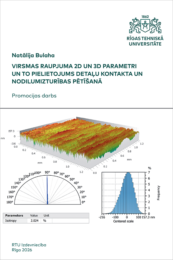 Virsmas raupjuma 2D un 3D parametri un to pielietojums detaļu kontakta un nodilumizturības pētīšanā