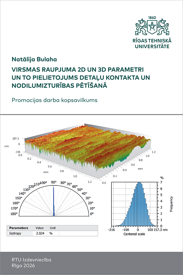 Virsmas raupjuma 2D un 3D parametri un to pielietojums detaļu kontakta un nodilumizturības pētīšanā